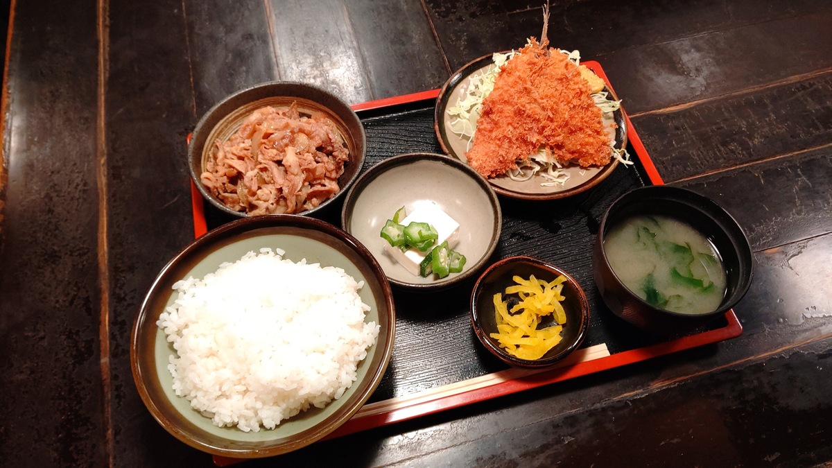 アジフライと生姜焼きのセットです(*^ω^*)